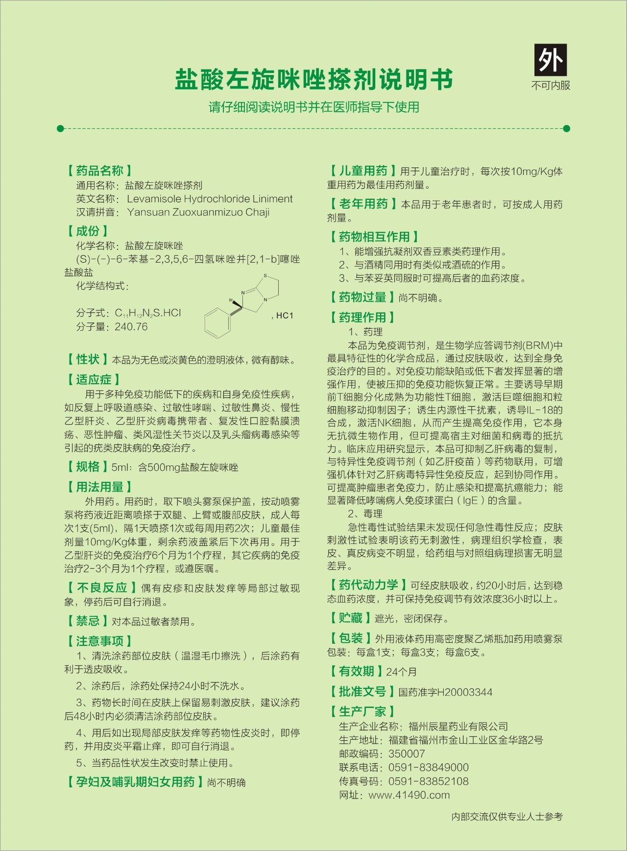 盐酸左旋咪唑搽剂(冕益康®)作为双向免疫调节剂可用于多种免疫功能低下的疾病和自身免疫性疾病,